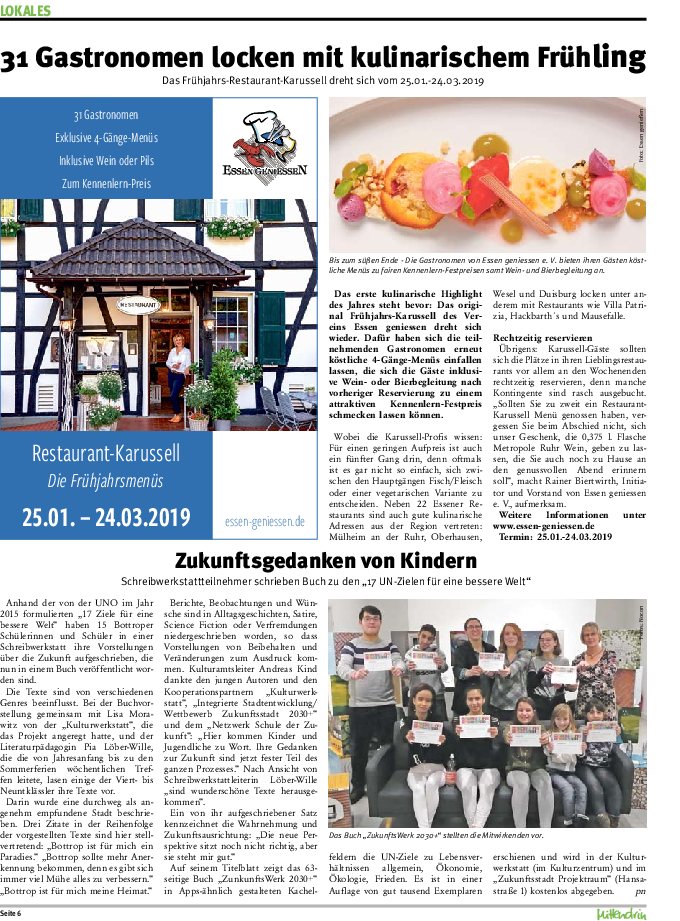 Artikel in der WAZ vom 24. Januar 2019 zum Start des Restaurant-Karussells 2019